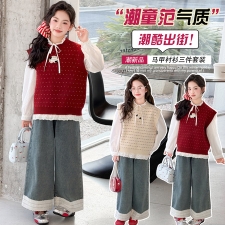 1*5下载视频“点点爱心马甲衬衫牛仔裤套装0121”